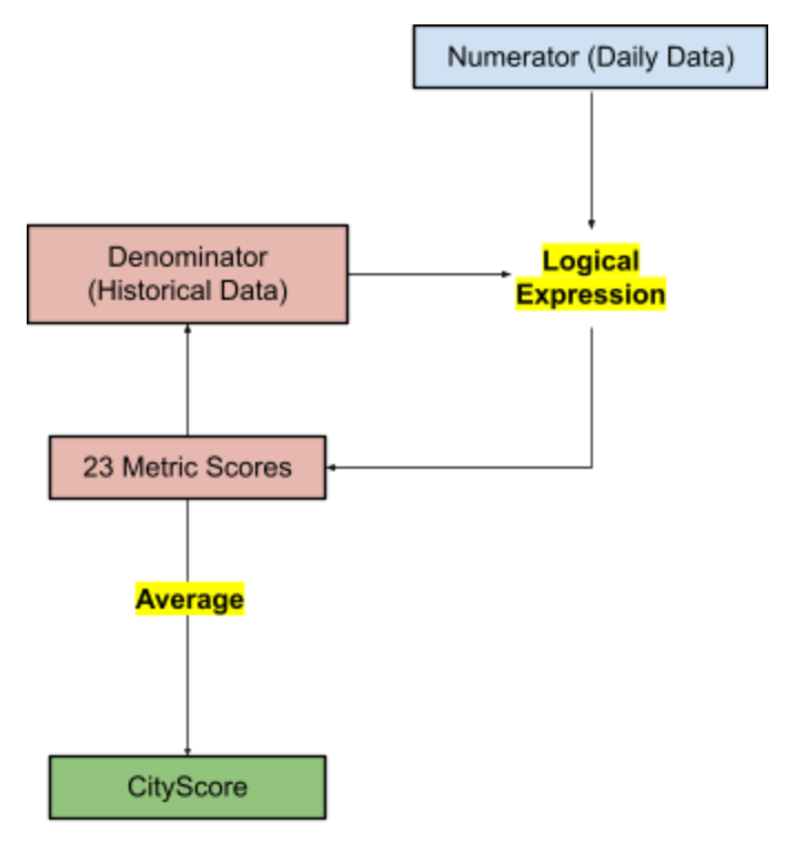 Models require inputs - in the case of the city, factors such as crime, car accidents, and infrastructure failures are useful indicators for determining the overall well-being. When adjustments and updates are made to the model, it becomes dynamic. This “dynamic model” can be trained to have more precise measures of predictiveness by continually inputting more data (O’Neil 25). City officials input data into the CityScore application under the categories “Numerators” or “Current Average”. Each metric is given a standardized “Denominator” or “Historical Average”, as well as a logical expression and a target. CityScore uses four types of